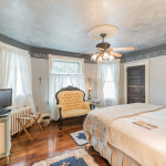 The Elizabeth Willow guest room is the Inn’s largest. Its pale gold and blue accents were inspired by the bedrooms of French royalty, and undoubtedly you will feel like a king or queen on the extraordinarily comfortable King-sized Stearns & Foster bed. Three large windows face the bed, as well as two comfy sitting chairs. The Elizabeth Willow room features wireless internet access and a High-Definition television. Directly across the hall is a large, private, bathroom with a six feet long claw-foot tub, as well as the modern convenience of a shower.